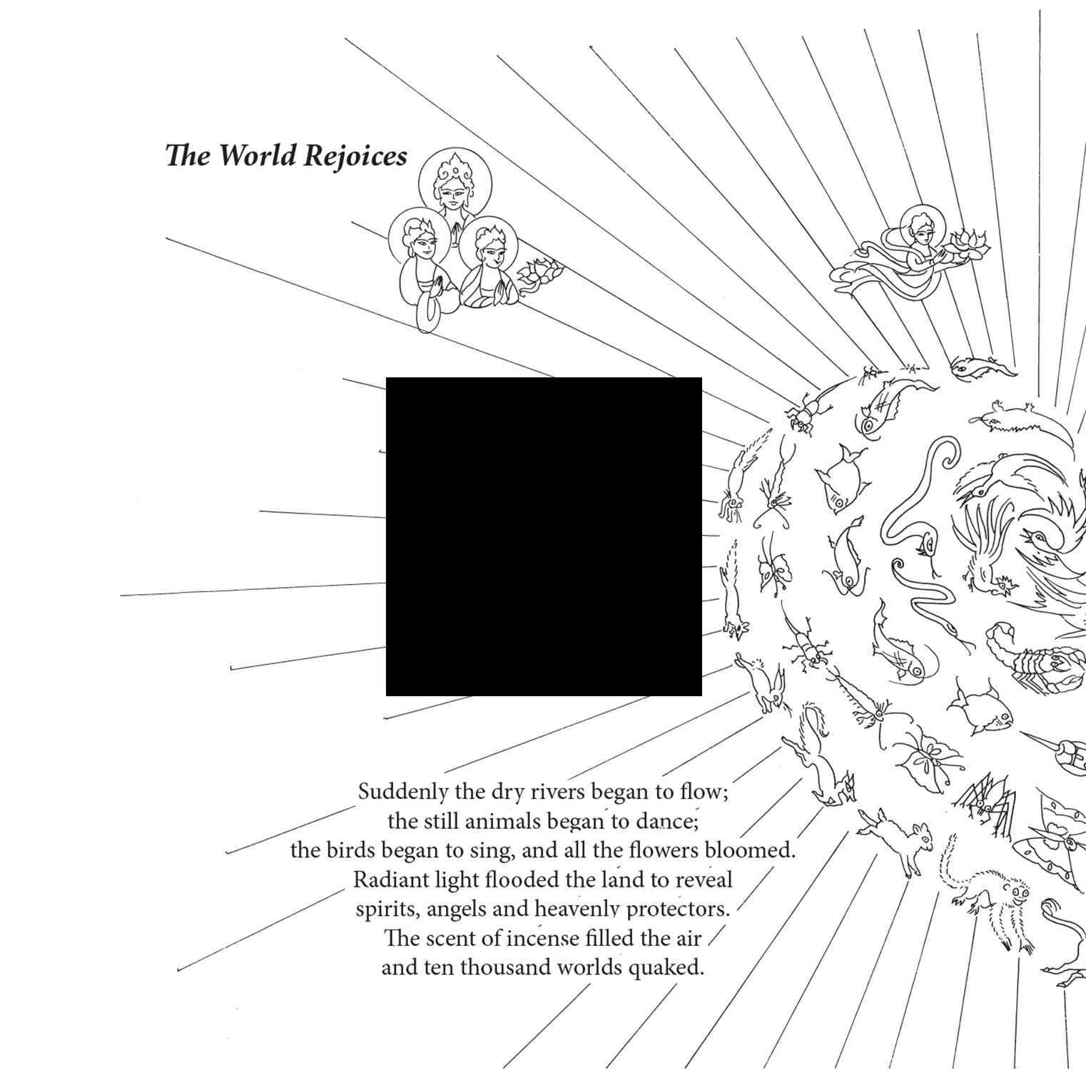 The passages are placed around a symbolic die-cut square hole that penetrates the book completely. The beautiful illustrations by the renowned artist Demi flow around the text and pull the reader/meditator into a world of serenity, peace, and clarity.