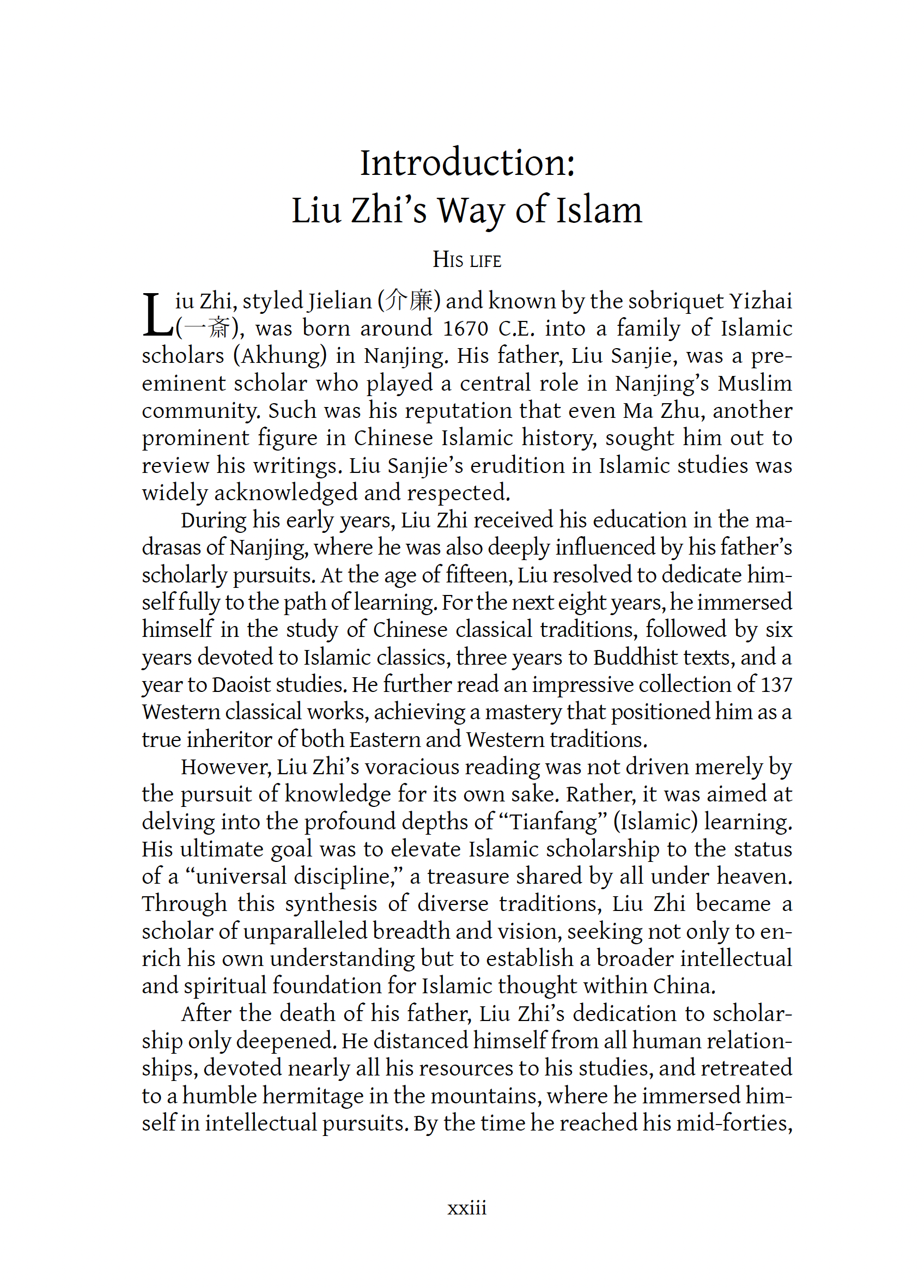 Liu Zhi was born into a scholarly family in Nanjing, Liu Zhi studied extensively in Confucian, Buddhist, Taoist, and Islamic traditions. He believed in the unity of Eastern and Western sages, seeing parallels between Confucius, Mencius, and the Prophet Muhammad.